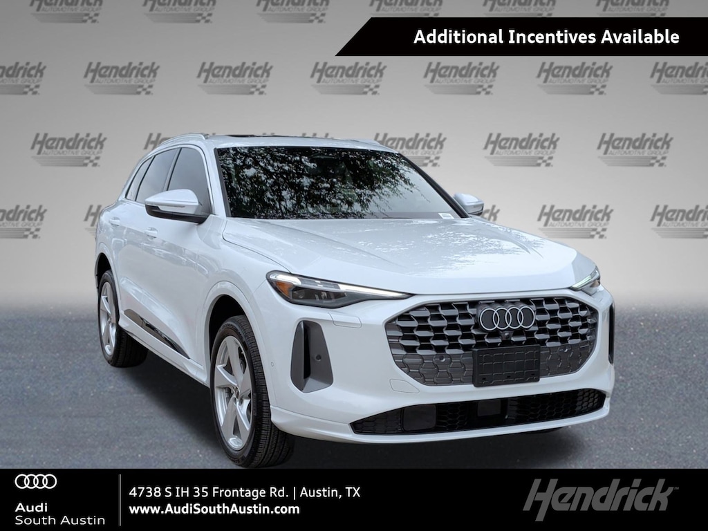 Closed-end lease financing available through 03/02/2026 for a new, unused 2025 Audi Q5 quattro Premium on approved credit to highly qualified customers by Audi Financial Services through participating dealerships. Lease offer only eligible to customers residing in TX. Monthly lease payment based on MSRP of $54,930 and destination charges, less a suggested dealer contribution, and application of $0 lease bonus resulting in a capitalized cost of $47,993. Lease bonus not redeemable for cash. Excludes tax, title, license, options, and dealer fees. $0 security deposit required. Amount due at signing includes first month’s payment, customer down payment of $4,525 and acquisition fee of $895. Monthly payments total $21,411. Your payment will vary based on final negotiated price. At lease end, lessee is responsible for disposition fee of $495, $0.25/mile in excess of 32,500 miles and excessive wear and use. A $395 fee applies if you purchase your lease vehicle. Offer not valid in Puerto Rico. See your local Audi dealer for details or, for general product information, call 1-800-FOR-AUDI. © 2026 Audi of America, Inc.