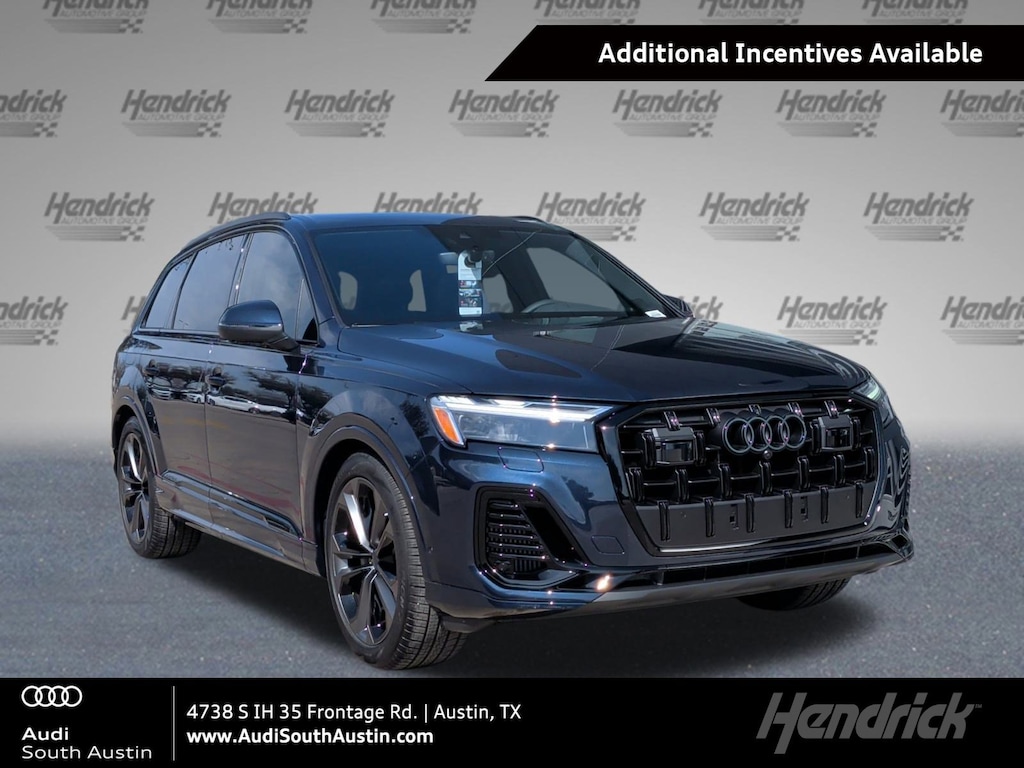 Audi of America will pay a $6,000 customer bonus when you purchase or lease a new, unused 2026 Audi Q7 55 TFSI quattro through participating dealers. Offer ends 03/02/2026. Customer bonus applied toward purchase or lease and is not redeemable for cash. Offer not valid in Puerto Rico. See your local Audi dealer or, for general product information, call 1-800-FOR-AUDI. © 2026 Audi of America, Inc. 2.99% APR, no down payment required, available on new, unused 2025 Audi Q5 quattro financed by Wells Fargo through participating dealers. Example: For 2.99% APR, monthly payment for every $1,000 you finance for 72 months is $15.19. Not all customers will qualify for credit approval or advertised APR. Offer ends 03/02/2026. Subject to credit approval by Wells Fargo. Offer not valid in Puerto Rico. See your local, participating Audi dealer for details or, for general product information, call 1-800-FOR-AUDI. © 2026 Audi of America, Inc.